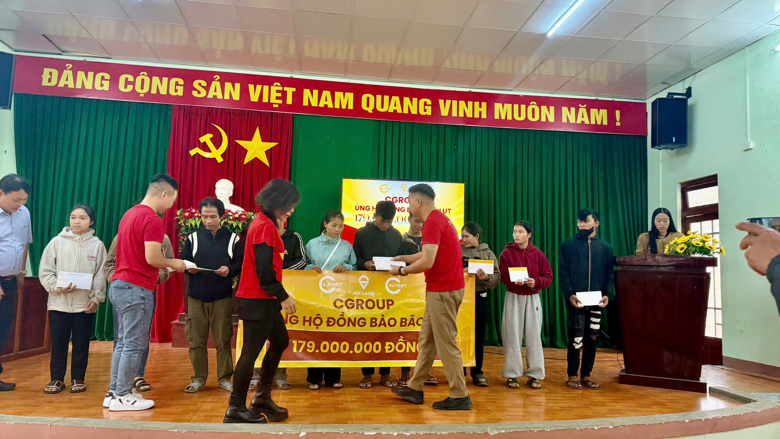 Tại buổi gặp gỡ xúc động, đại diện CGroup đã trực tiếp trao tận tay các hộ gia đình chịu thiệt hại nặng nề những phần quà thiết thực. Tổng ngân sách hỗ trợ trong đợt này là 179.000.000 đồng.