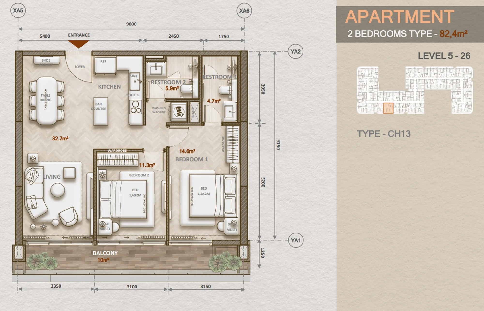 – Đơn vị vận hành (Tòa khách sạn): Accor Hotels (theo tiêu chuẩn 5 sao quốc tế)
